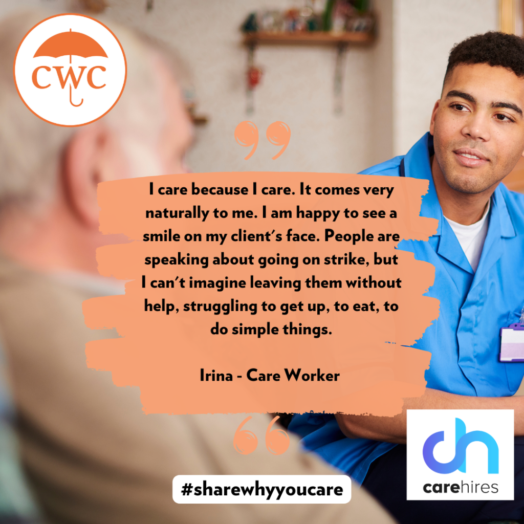 We wanted to support Care Hires with this initiative so we asked some of those we’ve helped over the last few years to share why they care. You can see some of the lovely answers we received below. (you can click on for a bigger view and click through)